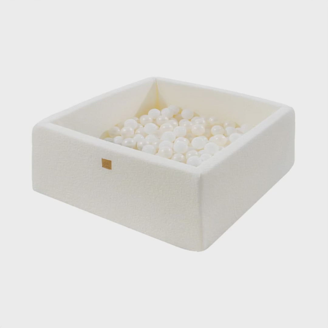 Luxe vierkant Premium Ballenbak “White Bouclé” met 200 witte ballen